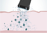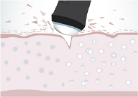アプリケーター先端のオキシポッドとジェルの化学反応によりCO2を発生。表面にざらつきが生まれ、古くなった角質を優しく除去します。