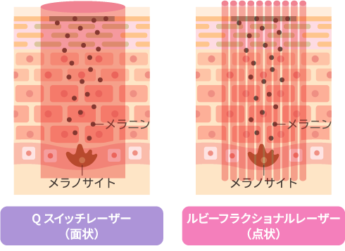 ルビーレーザーは、メラニン色素に吸収されやすく作用しやすいため、色素系の悩みにアプローチしやすい性質があります。■肌全体のトーン均一化に適す